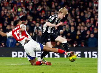 "ปืนใหญ่" อาร์เซนอล พลาดท่าแพ้ นิวคาสเซิล ยูไนเต็ด คาบ้าน ในศึกคาราบาว คัพ รอบรองชนะเลิศ นัดแรก