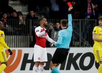 อาร์เซนอล ยกพลบุกไปพบความปราชัยเมื่อเจอ บาเต้ โบริซอฟ ที่ได้จังหวะครั้งเดียวโหม่งดับ 1-0 ศึก ยูโรป้า ลีก รอบ 32 ทีมสุดท้าย นัดแรก ขณะที่ อเล็กซองเดร ลากาแซตต์ ก็โดนใบแดงไล่ออกทำให้ทีมเสียเปรียบ